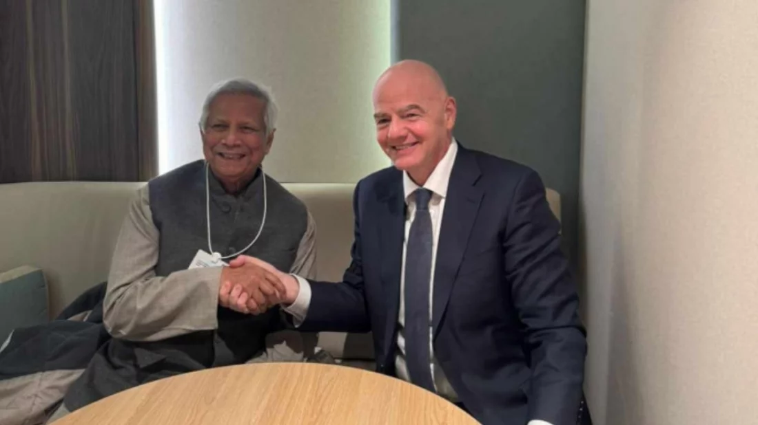 সুইজারল্যান্ডের দাভোসে বিশ্ব অর্থনৈতিক ফোরামের বাৎসরিক সম্মেলনের ফাঁকে বাংলাদেশের প্রধান উপদেষ্টা অধ্যাপক মুহাম্মদ ইউনূসের সঙ্গে সাক্ষাতে ফিফা সভাপতি এ প্রতিশ্রুতি দেন। প্রধান উপদেষ্টার ফেসবুক পেজ থেকে ইনফান্তিনোর সঙ্গে সাক্ষাৎ ও সফরসংক্রান্ত তথ্য জানানো হয়েছে।