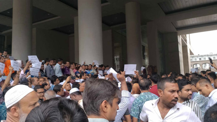 পৌনে ১টায় এ প্রতিবেদন লেখা পর্যন্ত বিক্ষোভ চলছিল সচিবালয়ে।