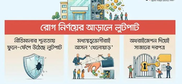 সরকারি হাসপাতালে রোগ নির্ণয়ের মেশিন উপহার দিয়ে রিএজেন্ট সরবরাহের আড়ালে কোটি কোটি টাকা লুটে নেওয়া হচ্ছে সম্পূর্ণ অপ্রয়োজনীয় ও অযৌক্তিক এক টেন্ডার পদ্ধতির সুবাদে। এ পদ্ধতি বছরের পর বছর ধরে জিইয়ে রেখেছে হাসপাতালের ভেতরেরই দুষ্টচক্র। তাদের সঙ্গে যোগসাজশ করেই এই অপকর্ম চালিয়ে যাচ্ছে পেশিশক্তিনির্ভর রাজনৈতিক ক্যাডার, মধ্যস্বত্বভোগী ও অসাধু ব্যবসায়ীচক্র।